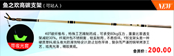 40T碳纤维布,特殊工艺精致而成,可承受80公斤压力,重量比普通支架减轻30%。杆尾外包不绣钢套,结实耐用,不易损坏。Y形支架头是一种硬质塑料,前头夜光防滑独特设计,防止划伤竿体,复杂而严谨的钢琴烤漆工艺,炫亮光滑,精致美观。