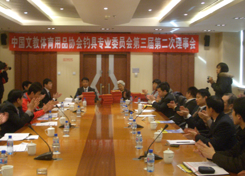 为贯彻08年度钓委会会长会议精神,钓具专业委员会于2月22日在廊坊市国际展览中心召开第三届二次理事会。中国文体用品协会杨立理事长和秘书长易晓俐、副秘书长徐谷宝及郝鹏等出席会议。会议代表约40余人参加大会。圈内媒体也到会采访。
