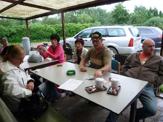 就在我参观木房子的时候,阿曼德他们那边已经忙着开始抽签定钓位了。我走过去,阿曼德告诉我:“钓位是抽签决定,今天钓鲤比赛每人要交37欧元,20欧元是比赛奖金,17欧元是交俱乐部的费用,这17欧元中包含咖啡和一顿午餐的钱。今天参赛的有15位钓友,获得前5名的有奖金”。