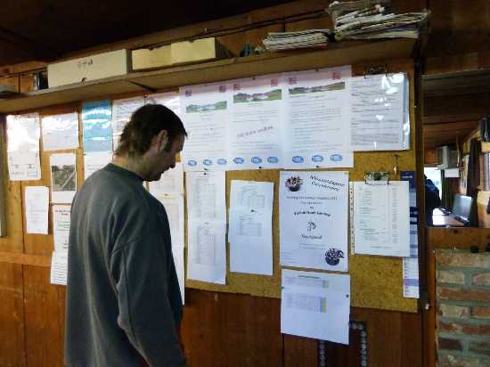 房子里侧是个吧台,中间摆着七张长桌,每张桌子可供8个人就座,窗户边上还有两张长沙发。对着窗户的墙上是公告栏,公告栏里贴了很多比赛成绩单,都是近期各俱乐部比赛的成绩,还有一些赛事广告,以及俱乐部的收支账目等。在吧台对面的墙上贴着两张印有各种淡水鱼图形和名称的招贴画。