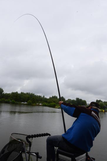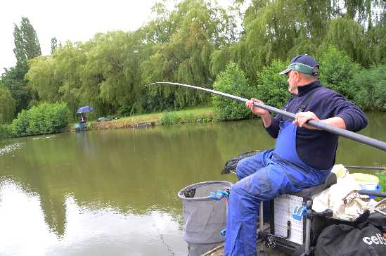 拍完照我又开始仔细研究眼前三位斩获颇丰的钓手的钓法了。22号钓位的佛兰斯30多岁,堪称“勇猛型”。每当鱼儿上钩,他就抡着大竿前后左右来回狠溜,直到把上钩的鱼遛到再没反抗的力气,才下抄网把鱼捞起来。21号钓位的路易40多出头,算是一位“机敏型”钓手。他看到浮漂有动静提竿迅速,根据手感判断上钩鱼的大小采取不同遛鱼策略,下抄子捞鱼的时机恰到好处,每次都是轻轻松松的就把胜利品放进了鱼护。而20号钓位年近60的老麦克则属于“老道型”钓手。每当鱼儿上钩老麦克总是不慌不忙,迅速提竿,短暂开遛,之后就把鱼竿往怀里拉,同时一节一节撤掉最后一节竿体,这样鱼也就越来越靠近岸边,最后瞅准时机下抄网把钓到的鱼抄上来。