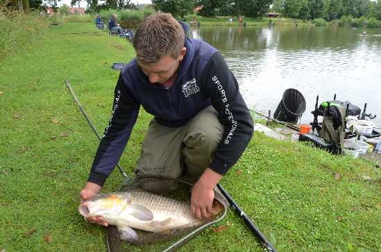 不知道是老麦克真的手艺高超,还是他今天运气好。不到半个小时,老麦克的鱼护里已经装进了四、五条大鲤鱼,而且条条都在5公斤以上。这时坐在老麦克左边的路易和佛兰斯也是频频提竿上鱼。我也是一会儿站到路易身边,一会转到佛兰斯身后。手里的“尼康”咔咔摁个不停。