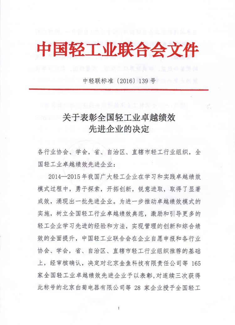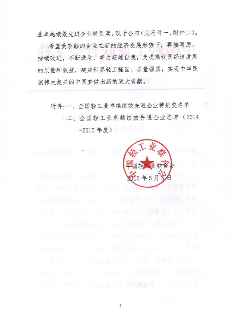 祝贺黑金刚、宝飞龙、老鬼、龙王恨获得全国轻工业卓越绩效先进企业(2014-2015年度)