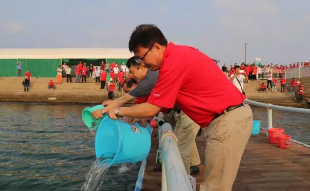 比赛期间,光威集团还组织了以“保护海洋资源 共建绿色家园”为主题的2016光威鱼苗放流公益活动,与会嘉宾、选手积极参加其中,一起在威海小石岛景区放流黑鲪鱼苗5万尾。